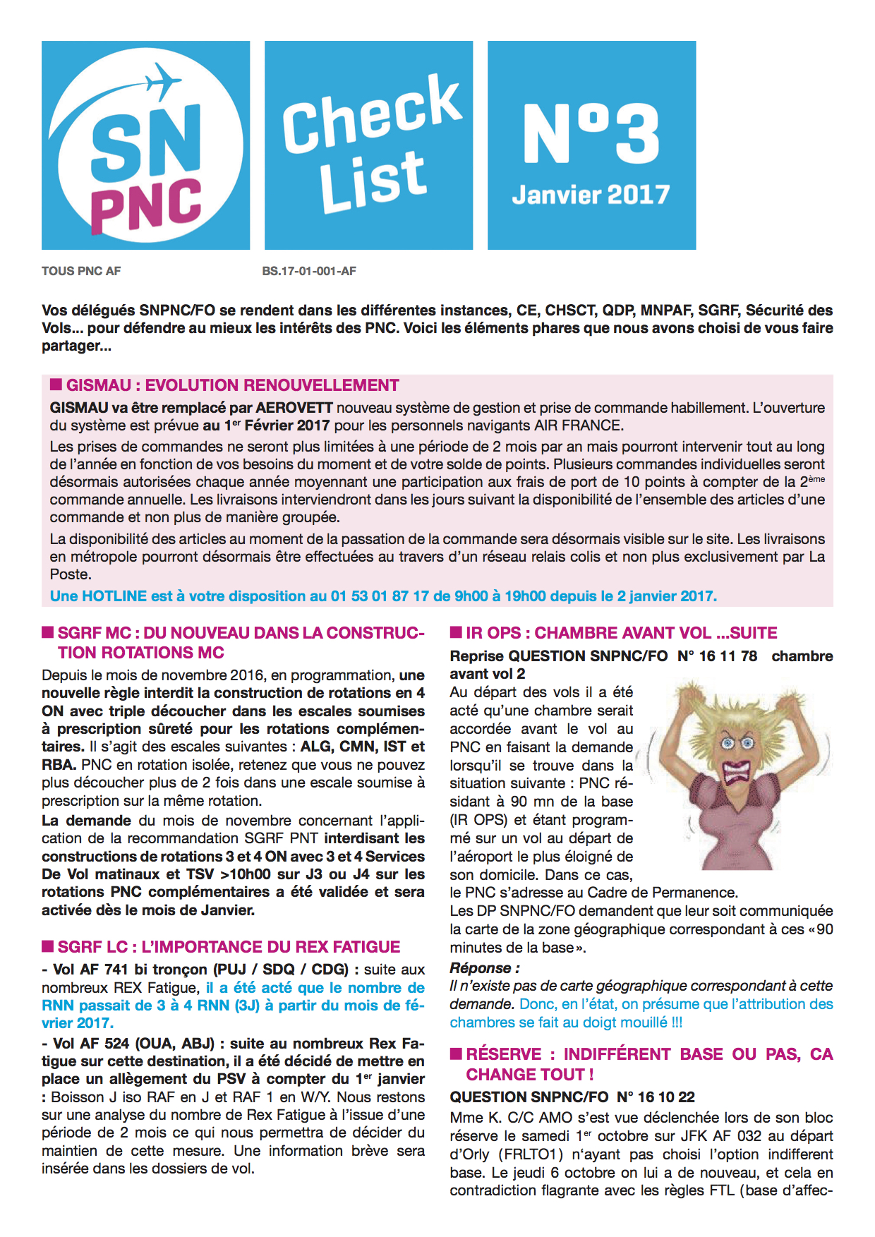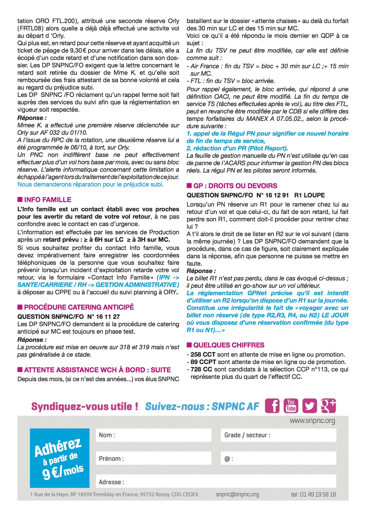 Vos délégués SNPNC/FO se rendent dans les différentes instances, CE, CHSCT, QDP, SGRF, Sécurité des Vols... pour défendre au mieux les intérêts des PNC. Voici les éléments phares que nous avons choisi de vous faire partager.