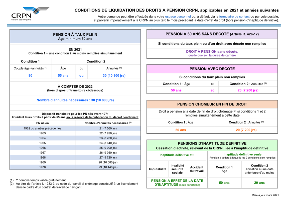 Vérifiez tout d’abord que vous réunissez bien les conditions de liquidation , ci-joint le tableau : (consultable sur le site de la CRPN ICI)