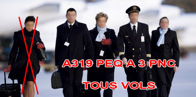 1-MC : composition équipage A319 à la baisse pour des services à la hausse à 3 PNC
