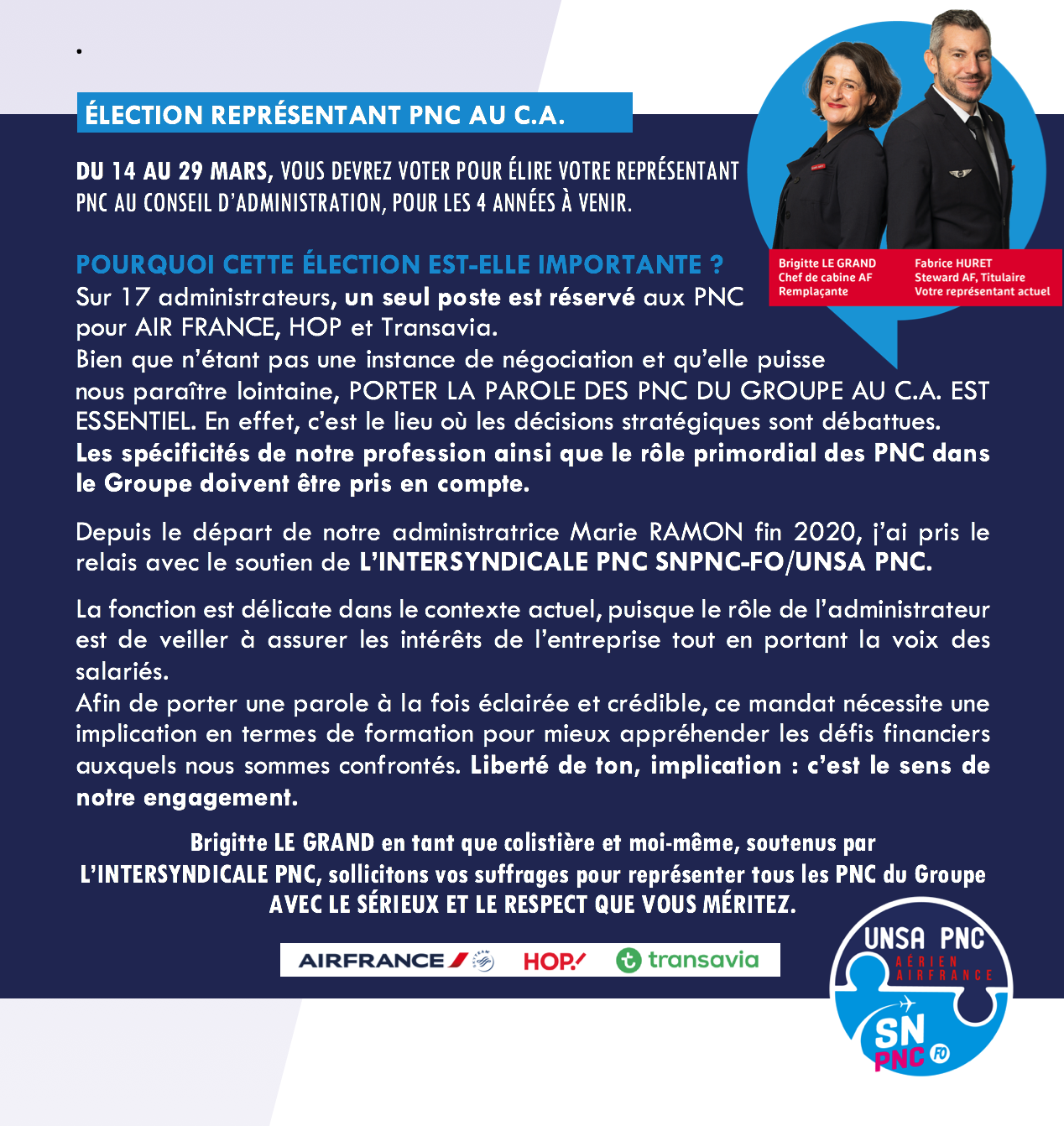 Tandis que le NPS client est toujours élevé, l’EPS global (« Employee Promoteur Score », indicateur de la capacité des salariés à recommander leur entreprise pour y travailler) est en berne. Les PNC, en contact direct avec les clients, ont montré leur engagement sans faille depuis deux ans. Maintenir la paix sociale dans l’entreprise devra donc être aussi une priorité pour nos dirigeants.