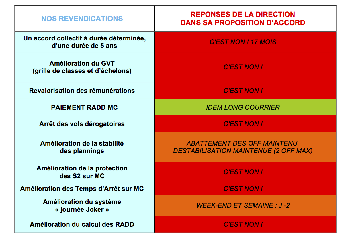 La négociation de notre Accord collectif est dans une impasse depuis plusieurs semaines déjà. Non seulement l’Entreprise refuse la quasi totalité de nos revendications, mais elle nous propose un Accord de 17 mois seulement. L'Entreprise qui sait que la conjoncture économique actuelle nous est favorable, veut nous amener à signer un Accord de très courte durée espérant ainsi passer l’été, les élections présidentielles et étouffer la grogne des PNC.