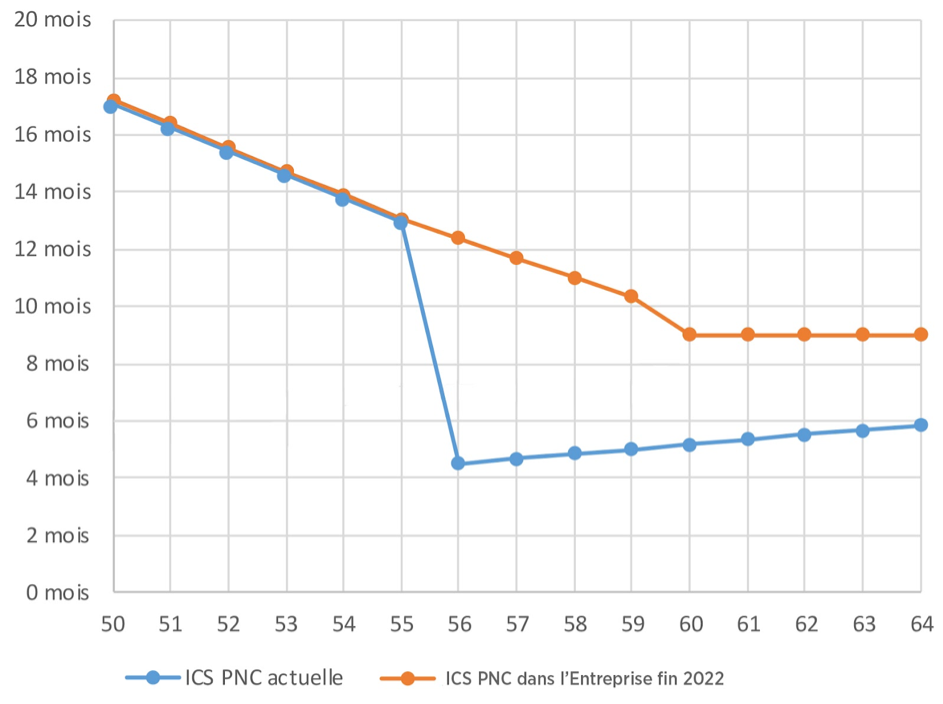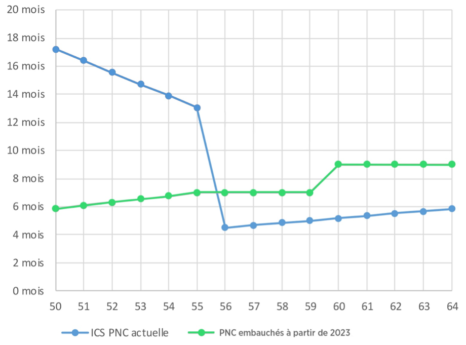 L’Entreprise a donc souhaité revoir le fonctionnement de l’ICS pour les nouveaux embauchés à compter de 2023 pour la faire coller à celle de l’ICS Pilotes. Dans les faits avec les réformes successives, l’âge de départ des PNC a fortement évolué ces dernières années malgré l’incitation au départ de l’ICS actuelle (51% des PNC partent au-delà de 56 ans avec un pic à 63 et 64 ans d’environ 22 %).