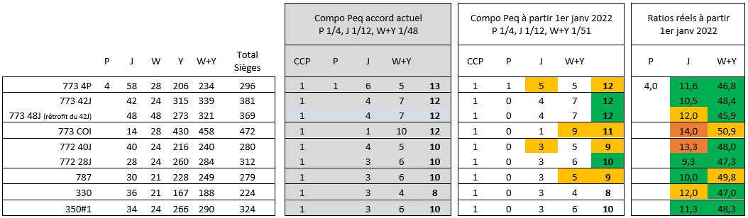 Nous avons préservé le nombre de C/C à bord, un temps menacé, sur tous les avions. Rien ne change en cabine Business avec le maintien du ratio 1/12 sauf sur 14 J et 40 J. Les B777-200 40J seront modifiés en version 28 J fin 2022, début 2023.