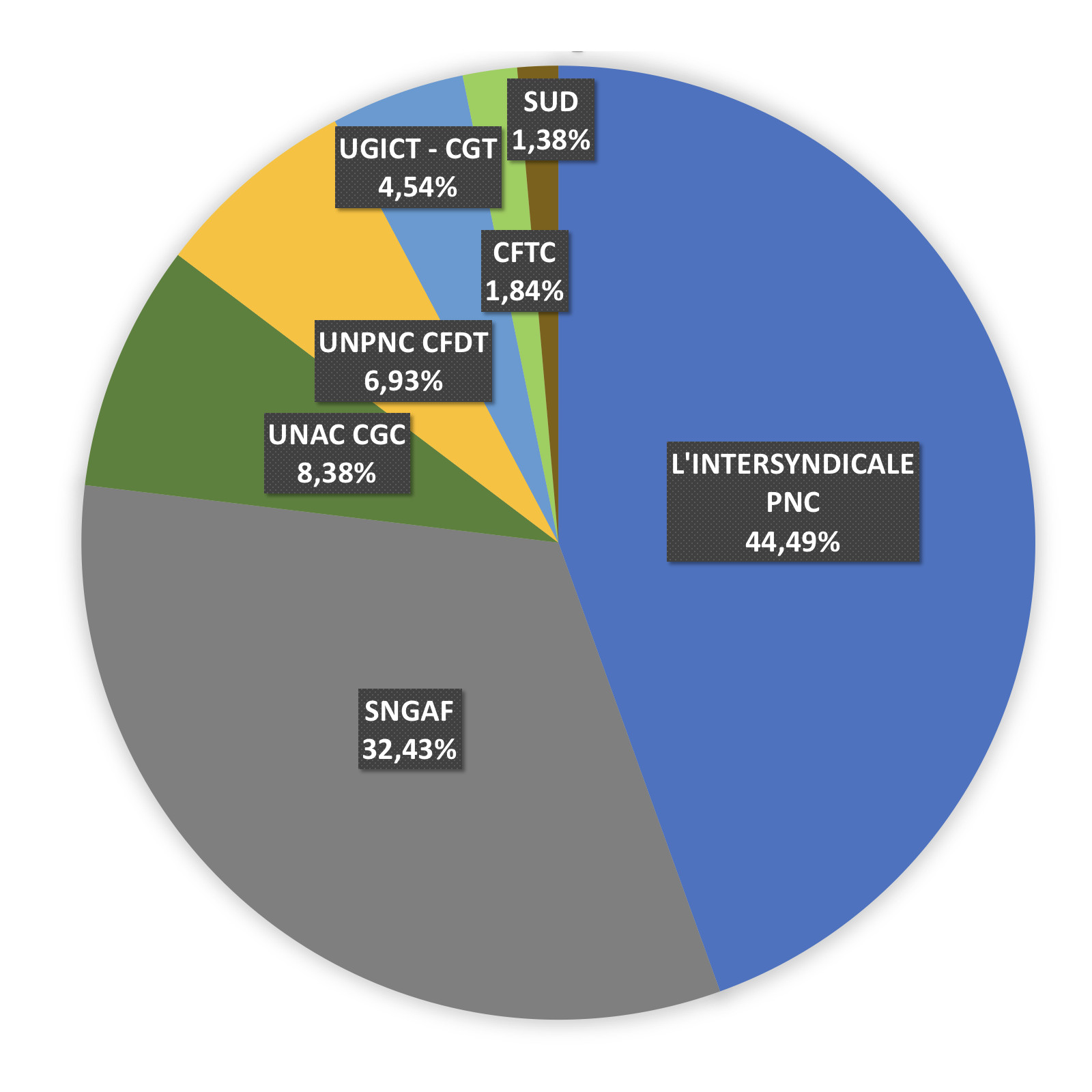 Avec 44,49 % des voix pour L'INTERSYNDICALE PNC, 7 listes en lice et une participation de 51,5 %, Marie Ramon, candidate titulaire et Fabrice HURET, son remplaçant, sont élus.