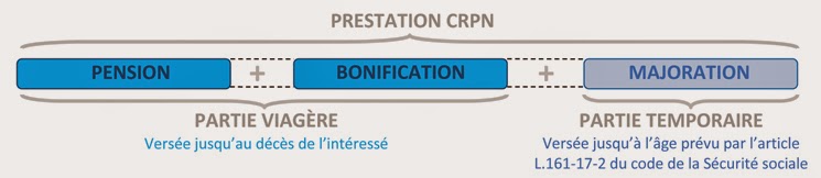 La particularité de notre situation est que la retraite complémentaire CRPN peut être perçue AVANT la retraite de base CNAV. De l’ouverture des droits CRPN jusqu’à l’âge de la retraite CNAV, la Caisse des PN verse, en plus de la pension à proprement parler (et de la bonification éventuellement si l’intéressé a élevé trois enfants au moins), un complément de prestation appelé « majoration de raccordement » ; Ce complément est acquis sous réserve de liquider sa pension CRPN à taux plein. Déconnectée du montant des droits viagers, la majoration peut représenter jusqu’à 30% du montant total de la prestation du PNC.