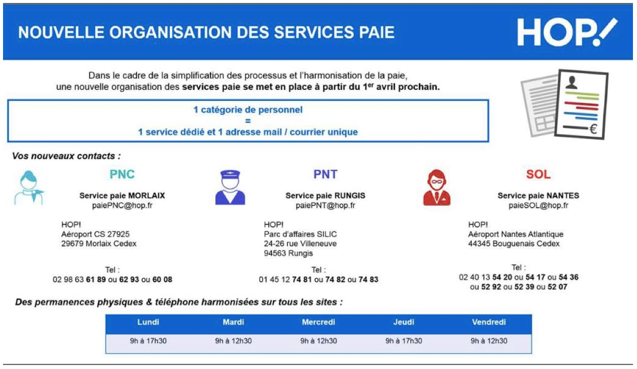 NOUVELLE ORGANISATION DU SERVICE PAIE A PARTIR DU 1ER AVRIL