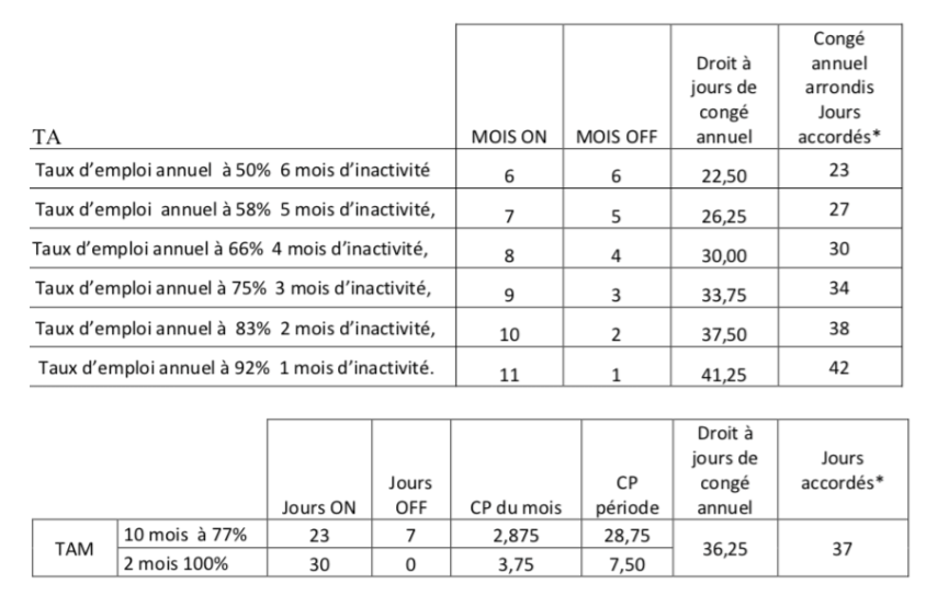 - Les droits aux CP, en fonction des différents temps alternés, se déclinent ainsi :