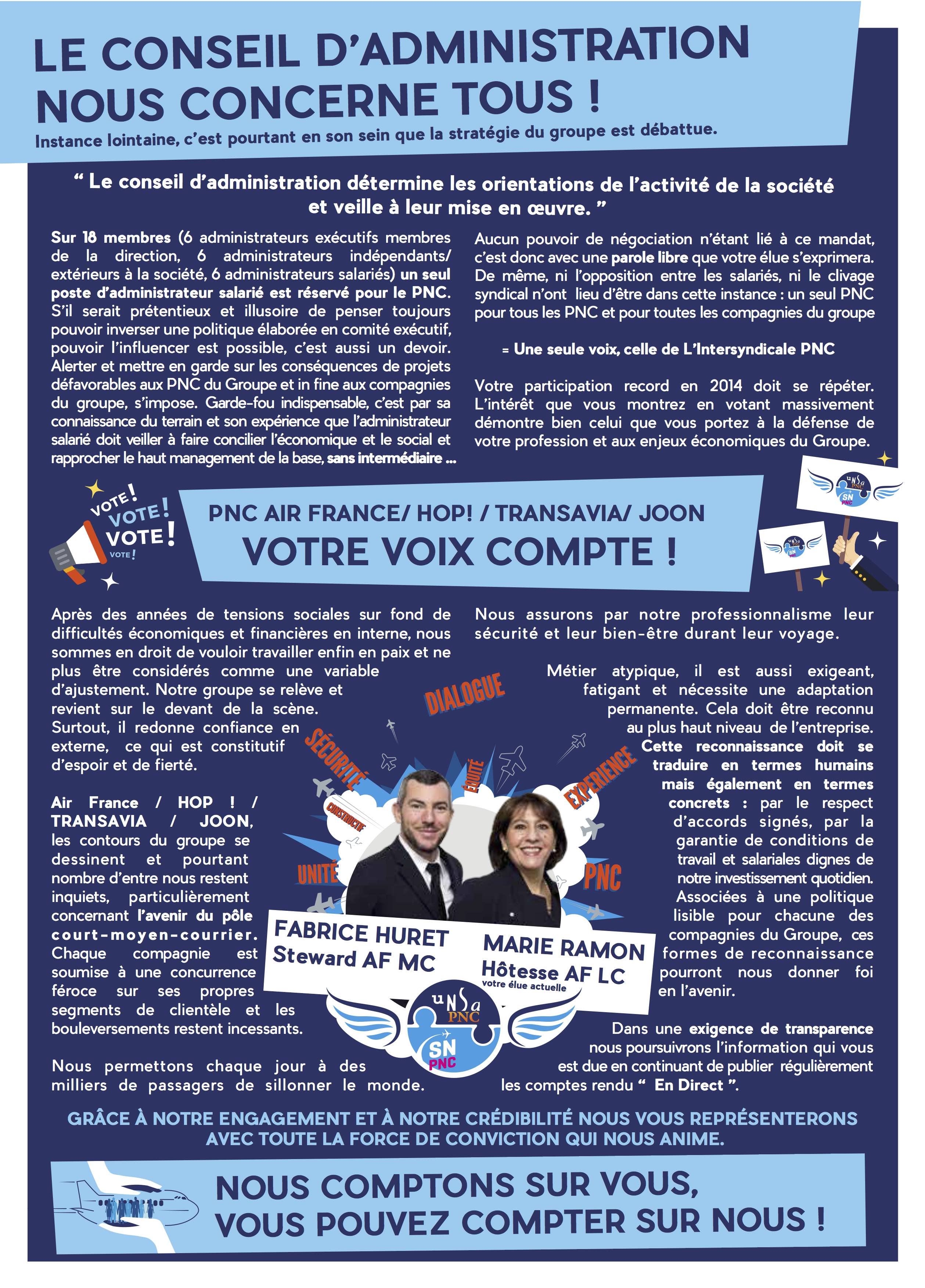 Election du représentant PNC au Conseil d'Administration du groupe Air France.
