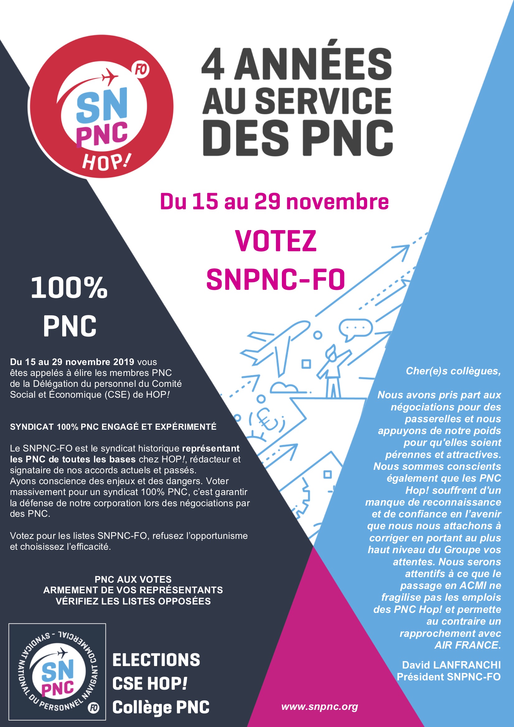 Du 15 au 29 novembre 2019 vous êtes appelés à élire les membres PNC de la Délégation du personnel du Comité Social et Économique (CSE) de HOP!