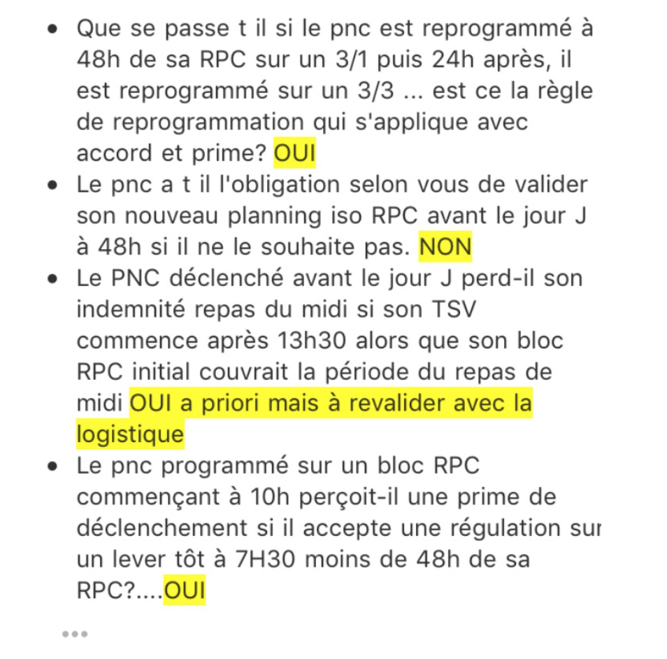 Nous ne sommes pas opposés à ce que le PNC accepte une activité à J-48h, mais il doit rester libre d’attendre le jour J de sa RPC pour valider son activité, sans pour autant être harcelé sur ses OFF.