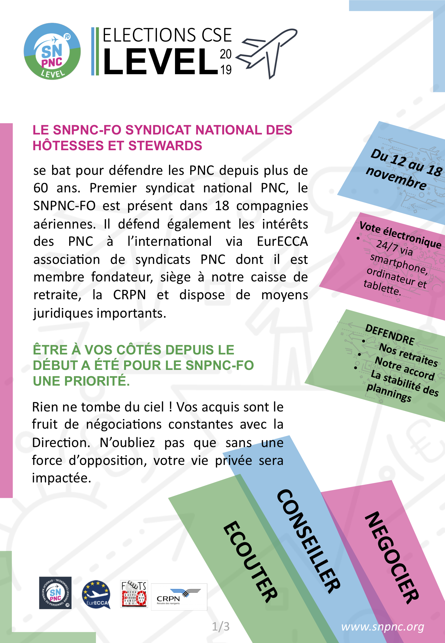 Elections Professionnelles LEVEL : Votez SNPNC-FO !