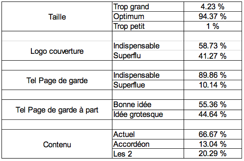 Le dernier point rejoint un peu les deux premiers : 3 de nos collègues nous indiquent ne plus vouloir recevoir cet agenda, soit qu'il arrive trop tard, soit qu'ils souhaitent un agenda d'un format plus important, voire même que la question de l'utilité d'un agenda-papier se pose pour ceux qui utilisent des agendas électroniques.