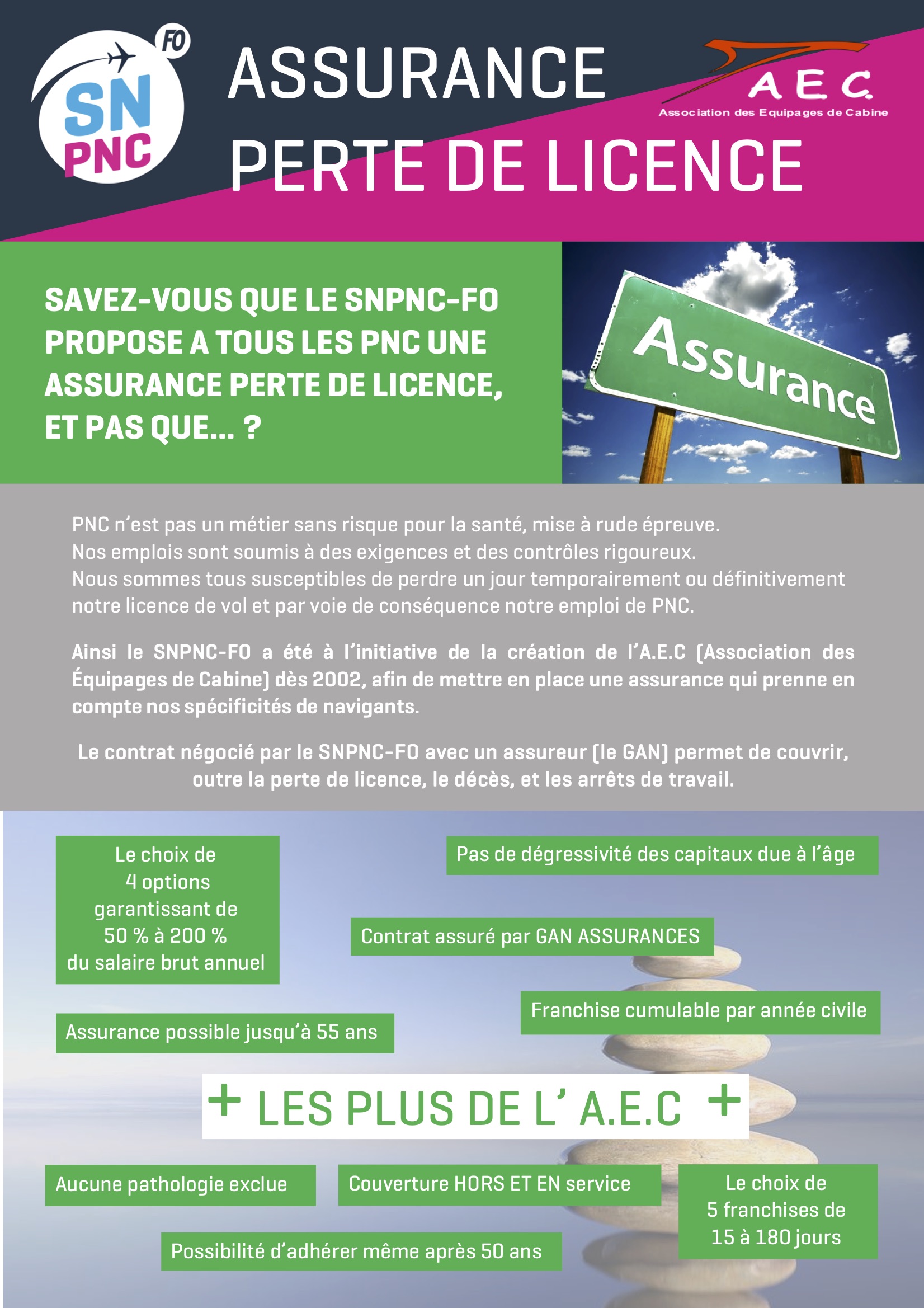 Ainsi le SNPNC-FO a été à l’initiative de la création de l’A.E.C (Association des Équipages de Cabine) dès 2002, afin de mettre en place une assurance qui prenne en compte nos spécificités de navigants.