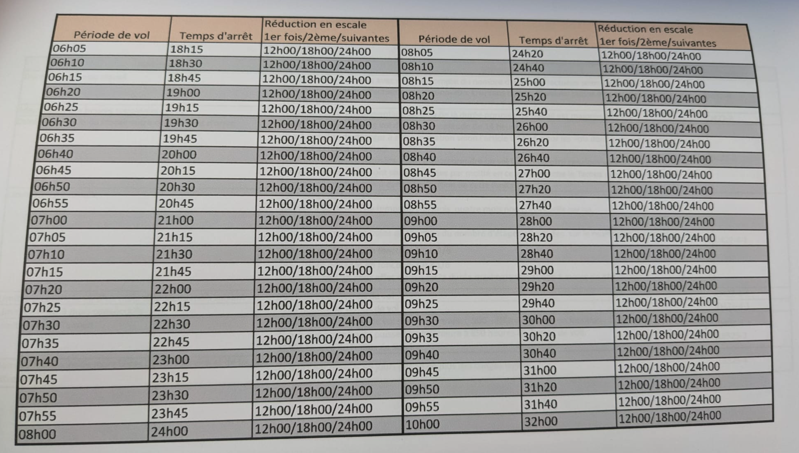Temps d’arrêt = Le temps de repos que l‘on devrait avoir après un nombre d’heures de vol données.