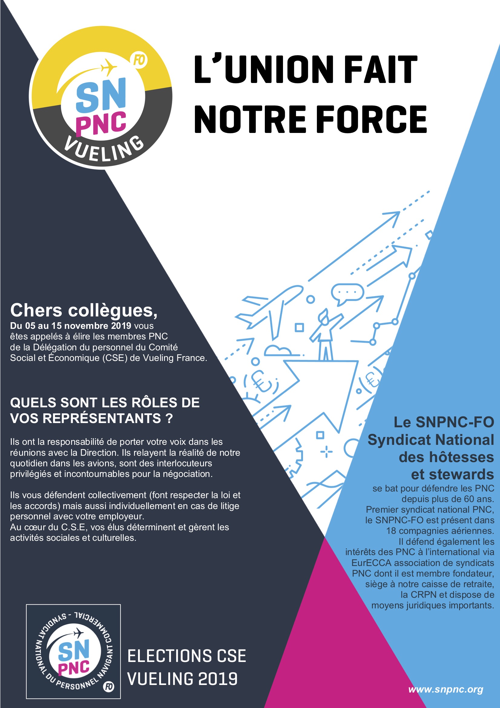 Du 05 au 15 novembre 2019 vous êtes appelés à élire les membres PNC de la Délégation du personnel du Comité Social et Économique (CSE) de Vueling France.